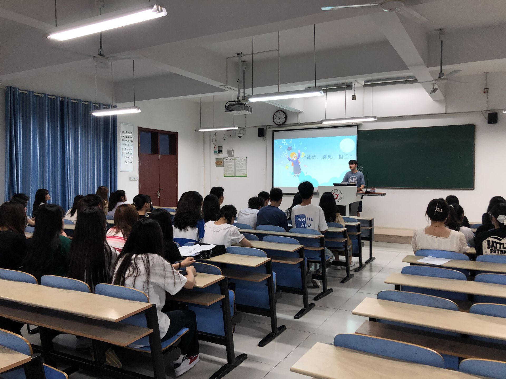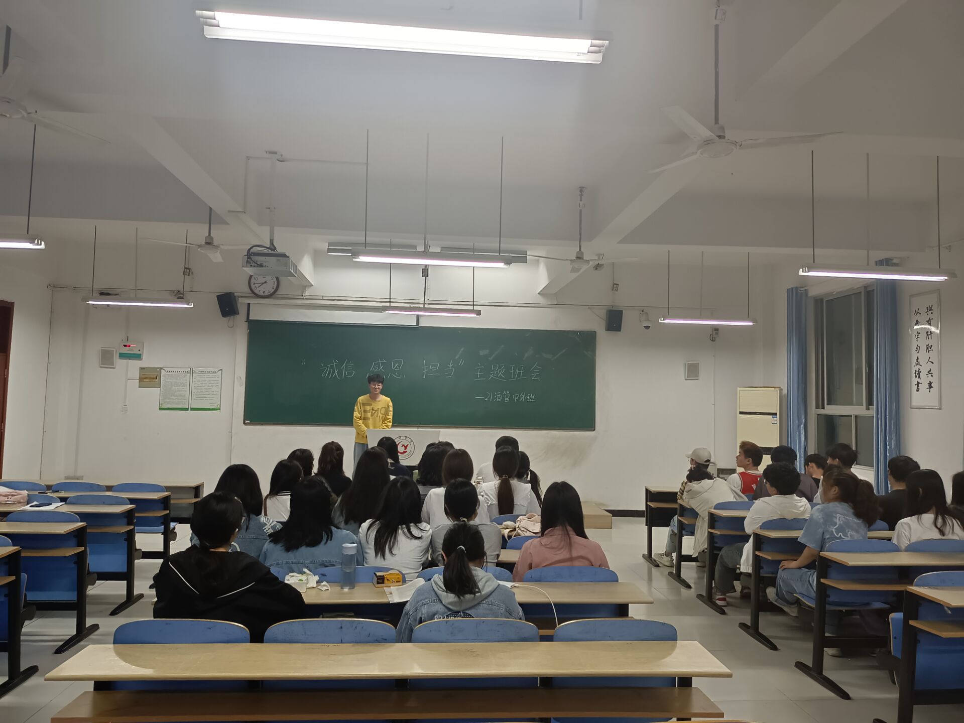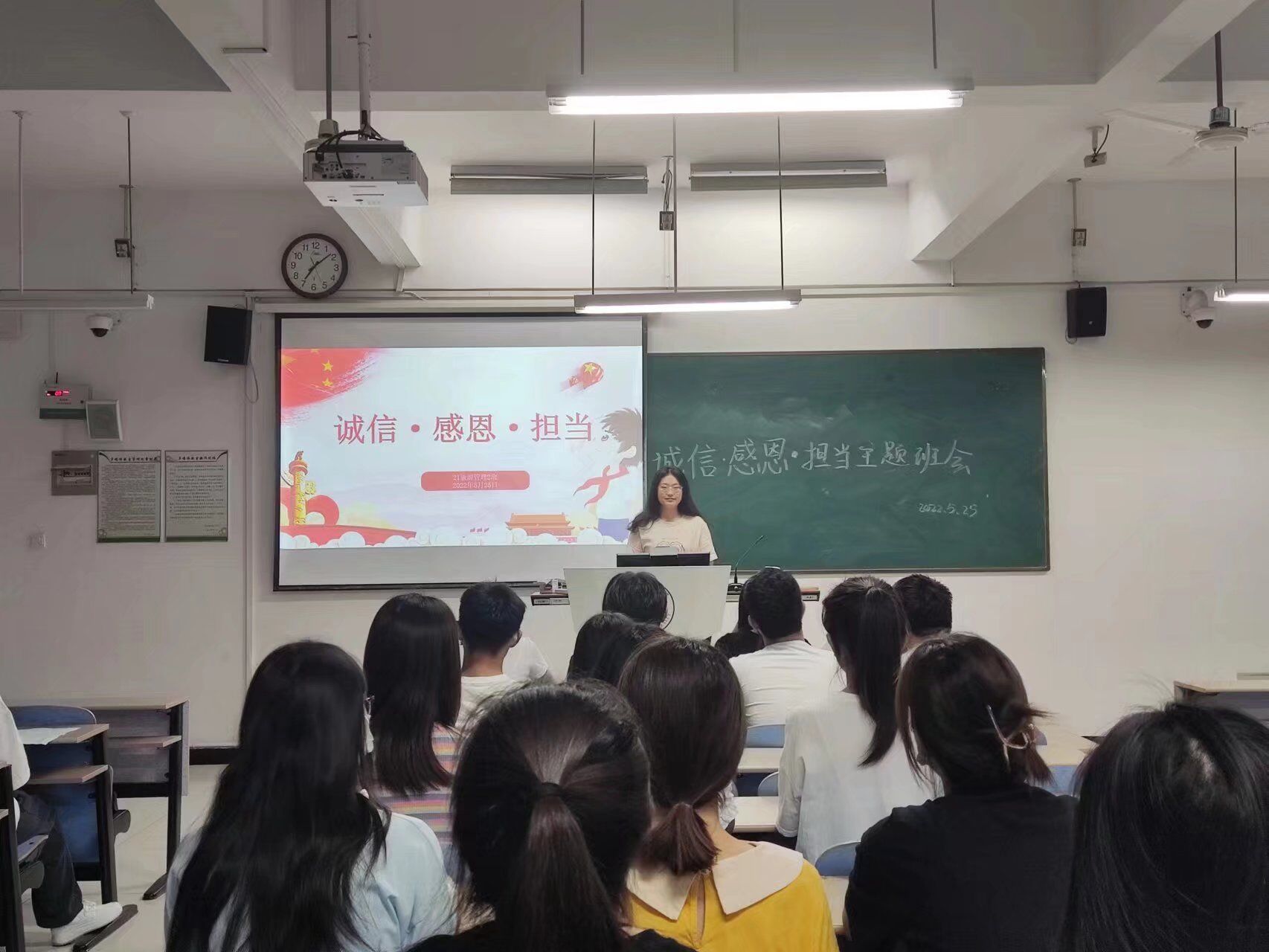 結合5月份大學生思政主題教育活動,學院以班級為單位組織召開 “誠信 感恩擔當”主題班會。各班級集中學習了國家助學貸款和金融征信知識,并結合誠信考試等內容教育大家要信守承諾、堅守誠信、堪當重任。大家在班會中積極發言,表達對于國家資助政策的感激,并且立志要學好專業知識,將來回饋社會。