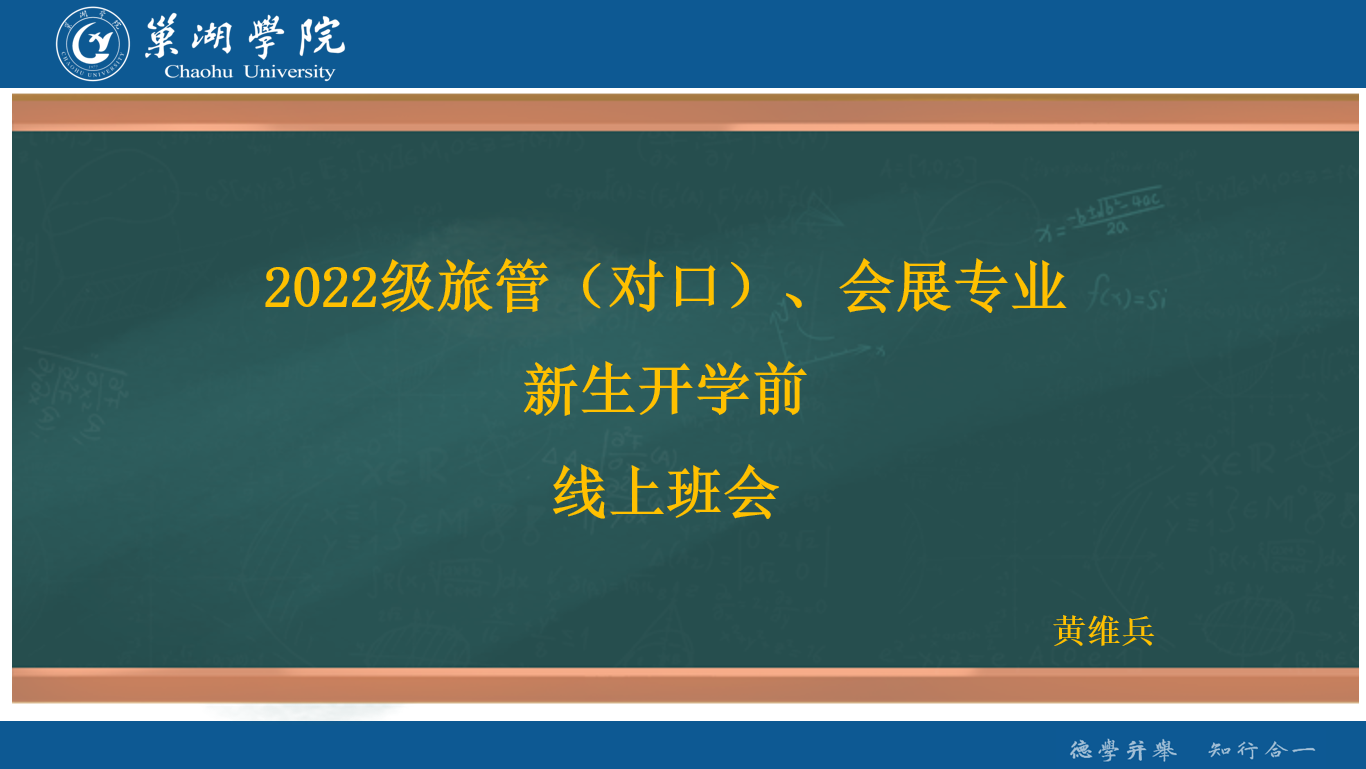 2022級新生開學臨近,為確保2022年秋季入學迎新工作能夠順利進行,幫助新生及家長提前了解學院以及大學生活,落實學校疫情防控要求及秋季開學迎新工作要求,旅游管理學院新生輔導員黃維兵老師于8月31日通過騰訊會議面向2022級會展與經濟專業、旅游管理(對口)專業召開線上主題班會,開展新生“開學前第一課”活動,近160名新生及家長參加了本次活動。