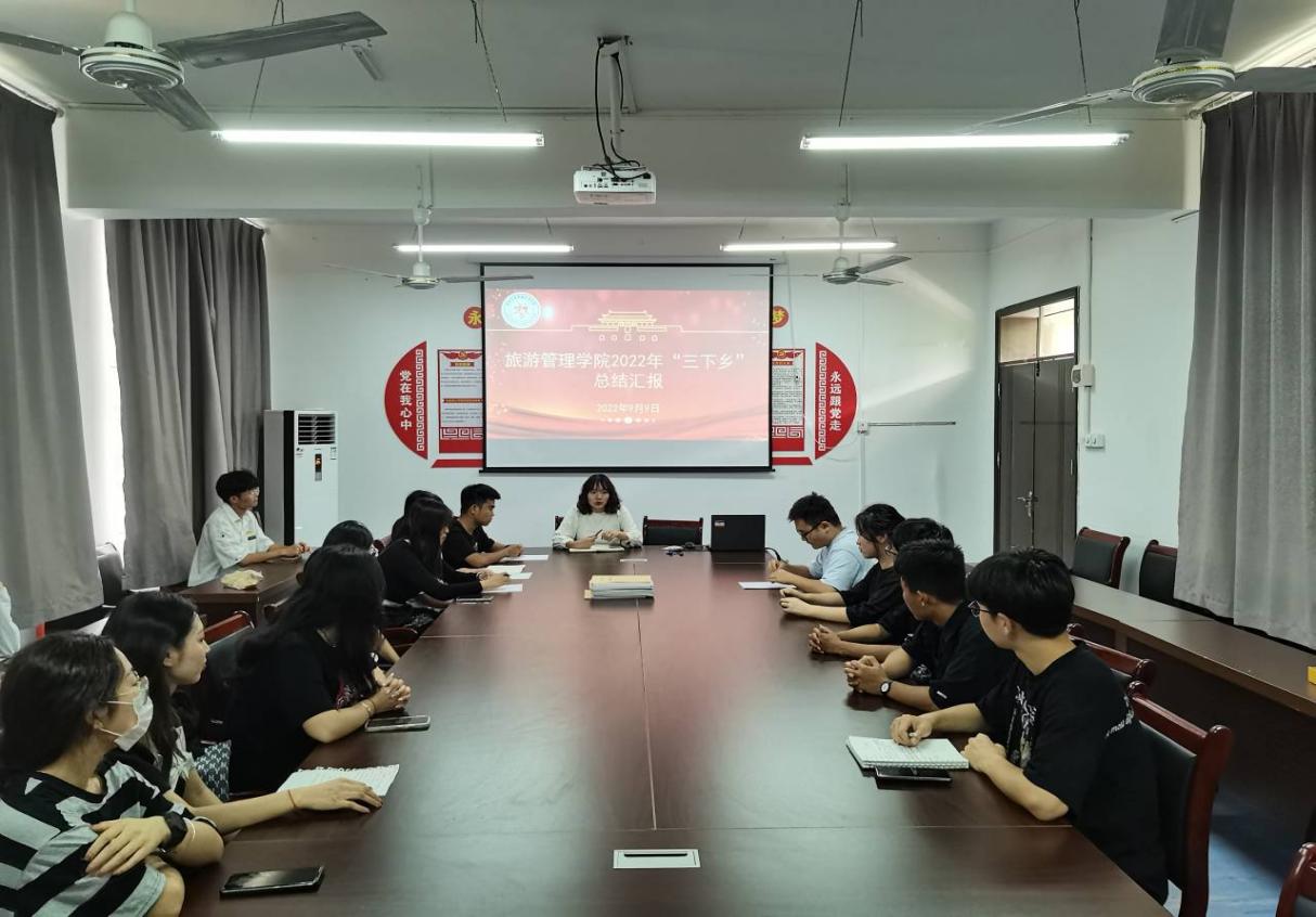 為總結(jié)經(jīng)驗(yàn),提煉成果,發(fā)掘亮點(diǎn),形成扎實(shí)育人成效,同時(shí)為推動(dòng)“三下鄉(xiāng)”社會(huì)實(shí)踐活動(dòng)深入開(kāi)展,9月9日旅游管理學(xué)院在明德樓會(huì)議室開(kāi)展2022年大學(xué)生志愿者“三下鄉(xiāng)”社會(huì)實(shí)踐活動(dòng)總結(jié)匯報(bào)活動(dòng)。會(huì)議由團(tuán)總支負(fù)責(zé)人孫圓圓主持,團(tuán)學(xué)組織學(xué)生骨干、各實(shí)踐團(tuán)隊(duì)代表參加。