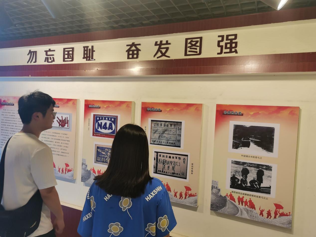 到達西河古鎮后,大家首先來到新四軍第三支隊在西河紀念館。館內藏有1938年新四軍抗戰時期的珍貴照片和文字資料,以及第三支隊在西河期間的多次戰役資料,真實反映了新四軍在中國共產黨領導下克服困難抗戰到底的光輝歷程。看到這些珍貴的照片和資料,黨員學生對革命先輩們油然而生最崇高的敬意,表示要把對革命先烈的追思、敬仰轉化為奮斗拼搏的動力,傳承好紅色基因。