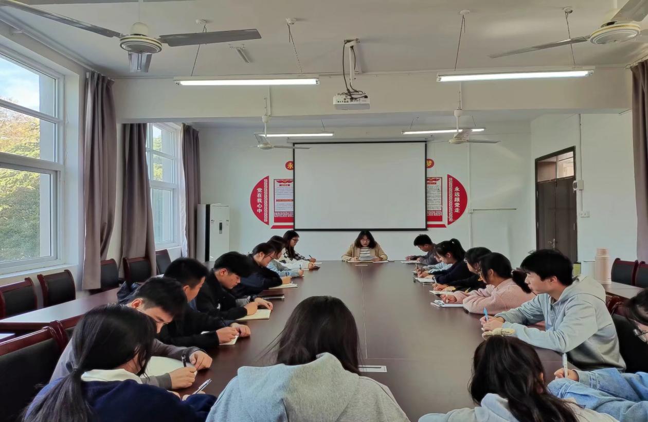 在團總支、學生會、青年志愿者協會等團學組織工作例會上,與會人員共同學習黨的二十大報告,并結合自身工作交流分享學習體會和心得感悟。