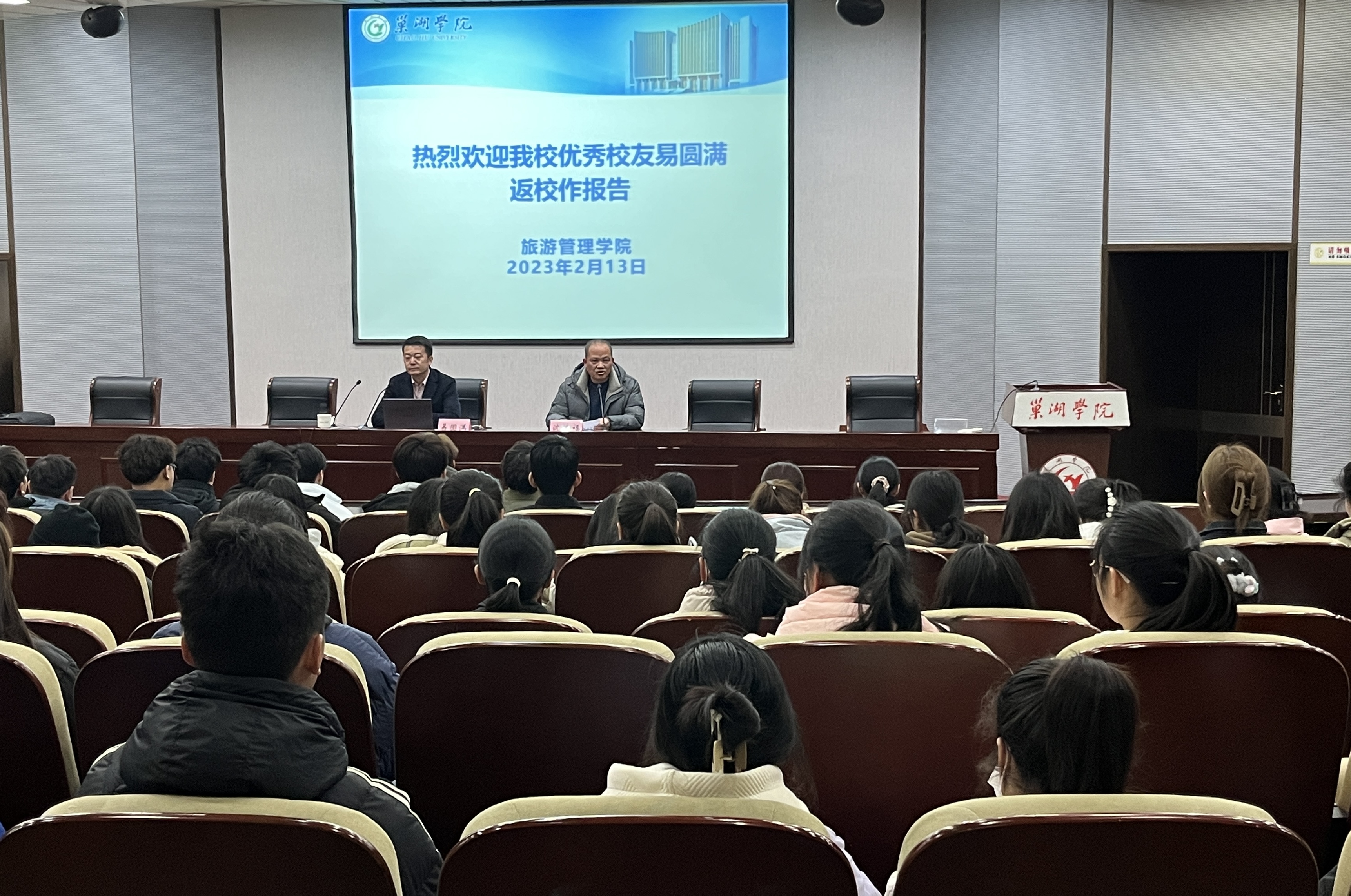 為進一步發揮優秀校友的示范引領作用,引導學生明確學業目標和職業方向,增強專業認同感,樹立專業榮譽感,2月13日下午,旅游管理學院在致知樓學術報告廳舉辦優秀校友專場報告會,特邀旅游管理學院2007屆優秀學子、富悅(上海)酒店管理有限公司總經理易圓滿進行經驗分享。本次報告會由旅游管理教研室主任沈德福主持,旅游管理學院2022級旅游管理專業、會展經濟與管理專業全體學生參加。