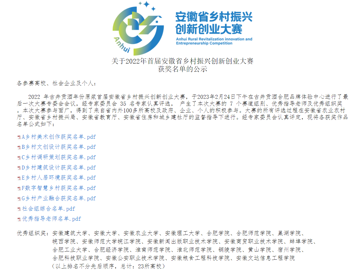2022年,安徽省鄉(xiāng)村振興創(chuàng)新創(chuàng)業(yè)大賽已被認定為省級B類賽事。今后,該賽事將會受到更多高校的重視。為此,旅游管理學院將承辦鄉(xiāng)村調研策劃和文創(chuàng)設計賽道作為學院2023年重點工作之一,希望通過為全校師生提供更多參與和實踐的機會再創(chuàng)佳績!(文、圖/楊仲元 初審/鄧其志 部門審核/雷若欣)