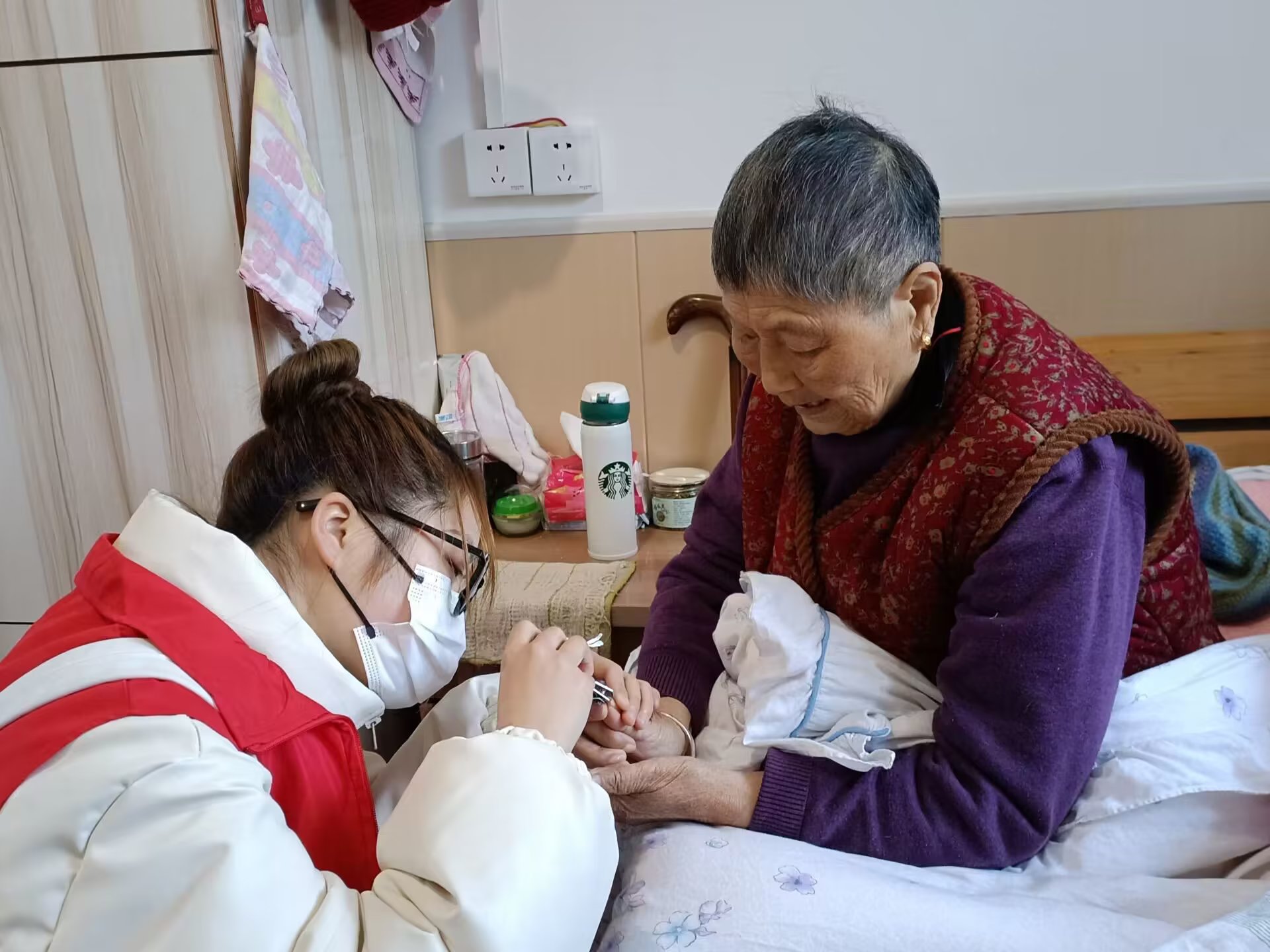 在敬老院管理人員的帶領(lǐng)下,志愿者們來到老人身邊與他們親切交談,了解老人們的日常所需,為老人捏肩、捶背、剪指甲,幫助他們打掃衛(wèi)生,獲得了敬老院和老人們的一致認可和夸贊。