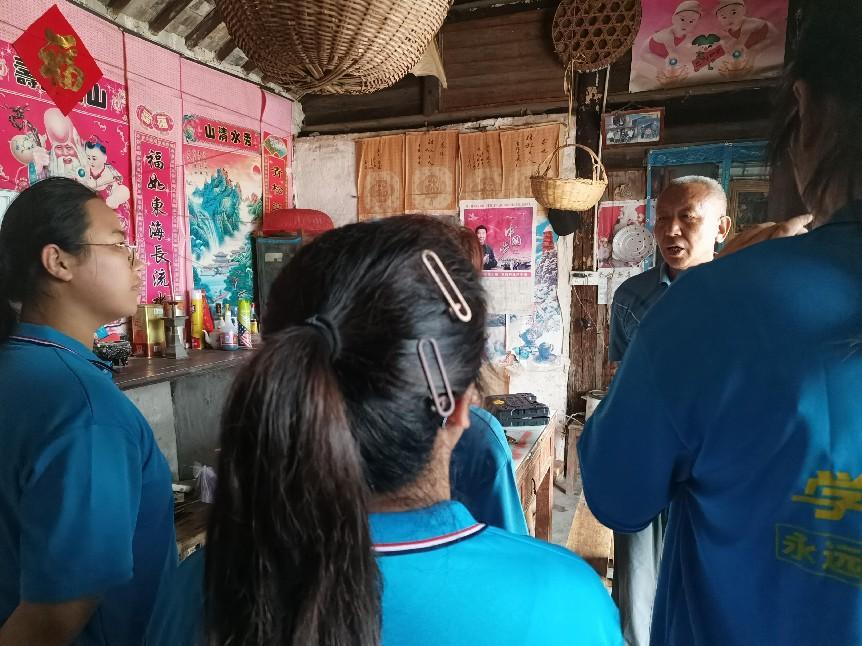 “部隊就是一個大熔爐,就跟你們大學(xué)一樣,天南海北的人聚在一起,講究的是一個心齊,還有就是不怕吃苦,要學(xué)會吃苦在先,享受在后”,說這句話的是當(dāng)?shù)赜兄嗄陱能娊?jīng)歷的老戰(zhàn)士。老前輩雖年事已高,接受采訪時仍精神矍鑠地用流利的普通話向成員們講述他參軍入黨,多年跟隨部隊作戰(zhàn)的經(jīng)歷。采訪過程中,前輩熱情地給成員們看他當(dāng)年的舊照片和保存下來的一些老物件,成員們對當(dāng)年歷史的了解大多是從書本和影視作品中獲得的,因此在采訪時都顯得十分好奇,前輩也很熱情和耐心地一一解惑。老人家思路清晰,講得認真,成員們也聽得專心而投入。