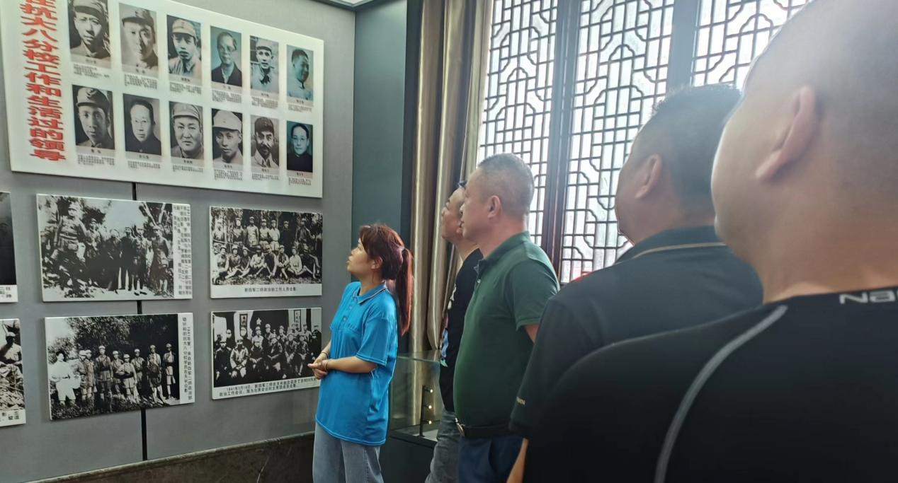 館內(nèi),負責(zé)人向成員們耐心又詳細地講解了館內(nèi)五個展廳的陳列和其背后的抗戰(zhàn)歷史:第一展廳主題是抗大歷史,彪炳千秋;第二展廳主題是艱苦歲月,鍛造英才;第三展廳主題是抗大生活,豐富多彩;第四展廳主題是軍民一家,魚水情深;第五展廳則主要展示了第九分校的簡單情況。唐霞書記向成員們介紹道,抗大八分校的前身是成立于1940年5月的新四軍江北軍政干校,皖南事變后,為適應(yīng)形勢發(fā)展的需要,經(jīng)劉少奇提議,中央軍委同意,在天長設(shè)置了抗大八分校。當(dāng)年,劉少奇、羅炳輝等老一輩革命家為創(chuàng)辦、發(fā)展抗大八分校,實現(xiàn)正規(guī)辦學(xué),傾注了大量心血。成員們認真聆聽講解,仔細觀看陳列,對當(dāng)年的抗戰(zhàn)歷史有了更為清晰的認識。