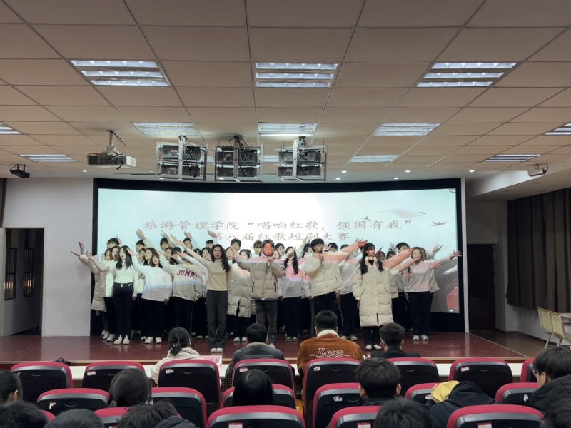 旅游管理學(xué)院堅持用好紅色文化資源,以紅歌短劇、紅色展館講解、行走的紅色課堂等為抓手,將紅色文化融入到育人全過程,構(gòu)建紅色文化育人品牌。近日,旅游學(xué)院在博學(xué)樓3D導(dǎo)游模擬大廳舉行第八屆紅歌短劇大賽決賽,現(xiàn)場氣氛熱烈,掌聲不斷,來自23級各專業(yè)的10支隊伍,通過合唱紅色經(jīng)典歌曲,編排短劇等形式,表達(dá)了對于祖國的祝福和革命先輩的崇高敬意。