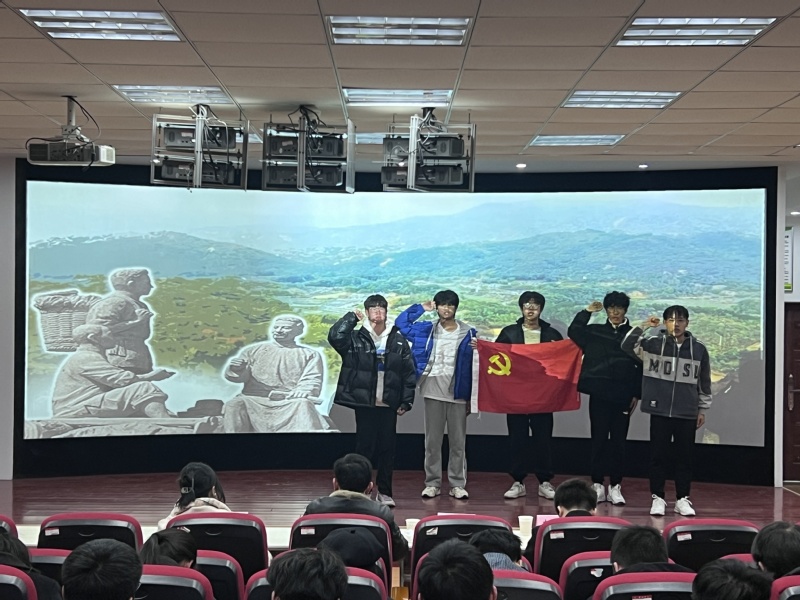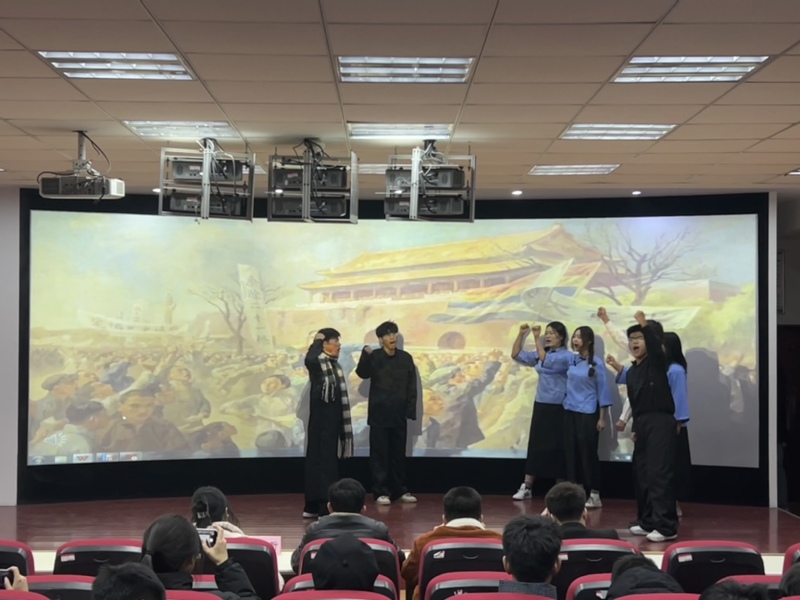 在短劇比賽環(huán)節(jié),由23級旅管1班的節(jié)目《穿越百年的紅星》以渡江戰(zhàn)役為背景,表達(dá)了幸福生活的來之不易,青年學(xué)生要銘記英烈功勛,傳承好紅色基因;23級會展班帶來的節(jié)目《破曉》將時光拉回到了104年前的五四運動,帶領(lǐng)現(xiàn)場觀眾重溫了那段激情燃燒的歲月;23級酒管(中愛合作)班帶來的《紅巖魂·青年志》,用一段段黨史故事,展示出了革命前輩堅貞不屈精神;23旅管2班帶來的節(jié)目《紅色信使》用精湛的表演,展示了革命年代,一個青年學(xué)生從愛國到革命的轉(zhuǎn)變;23級旅管3班帶來的節(jié)目《黨旗在心中》,講述了革命年代,三位黨員克服層層困難找到黨組織的故事。