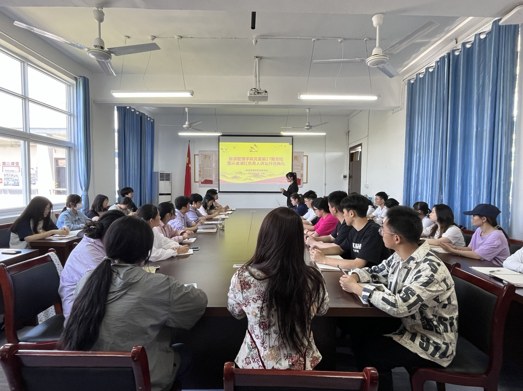 5月16日中午,旅游管理學院黨委第27期黨校暨環巢湖紅色文化育人講壇隆重開班。學院副院長雷若欣、黨委副書記、紀委書記鄧其志,學生支部書記馬其霞、黃維兵、徐浩然出席典禮,34名入黨積極分子參加開班儀式。開班典禮由黨校班主任曾鵬主持。