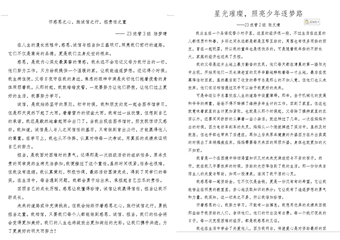 豐富載體,營造育人氛圍。為豐富活動載體,營造濃厚的教育氛圍,我院組織開展主題征文、漫畫、書法等活動。活動中,學生從個人經歷出發,以筆聚力、以文言志,表達對國家、對學校、對父母的感恩之情,進一步增強了學生誠信意識、擔當意識。