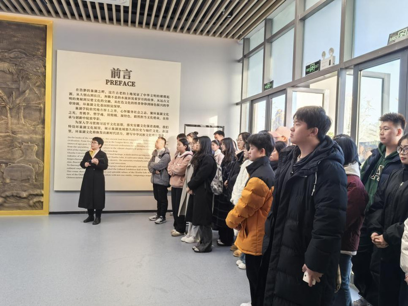 11月27日,旅游管理學院60名入黨積極分子暨環巢湖紅色文化育人班學員集聚在環巢湖文化展館,旅游學院副院長雷若欣化身為授課教師兼展館講解員,為入黨積極分子上了一堂地域文化課。