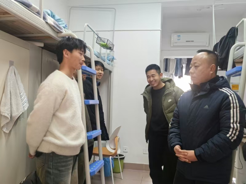 走訪過程中,夏桂林詳細詢問了新生住宿、生活習慣等情況,與同學們“拉家常、聊近況、話學業”,并希望大家盡快適應新環境、融入新集體,開啟大學新征程。同時勉勵同學們珍惜大學時光,注意加強身體素質訓練,扎實學好專業知識,努力提高綜合素養,爭做德智體美勞全面發展的新時代大學生。此外,他還叮囑同學們入校后要嚴格遵守校規校紀,注意宿舍的衛生、用電安全,提高警惕,防范各類詐騙,保護好人身財產安全。