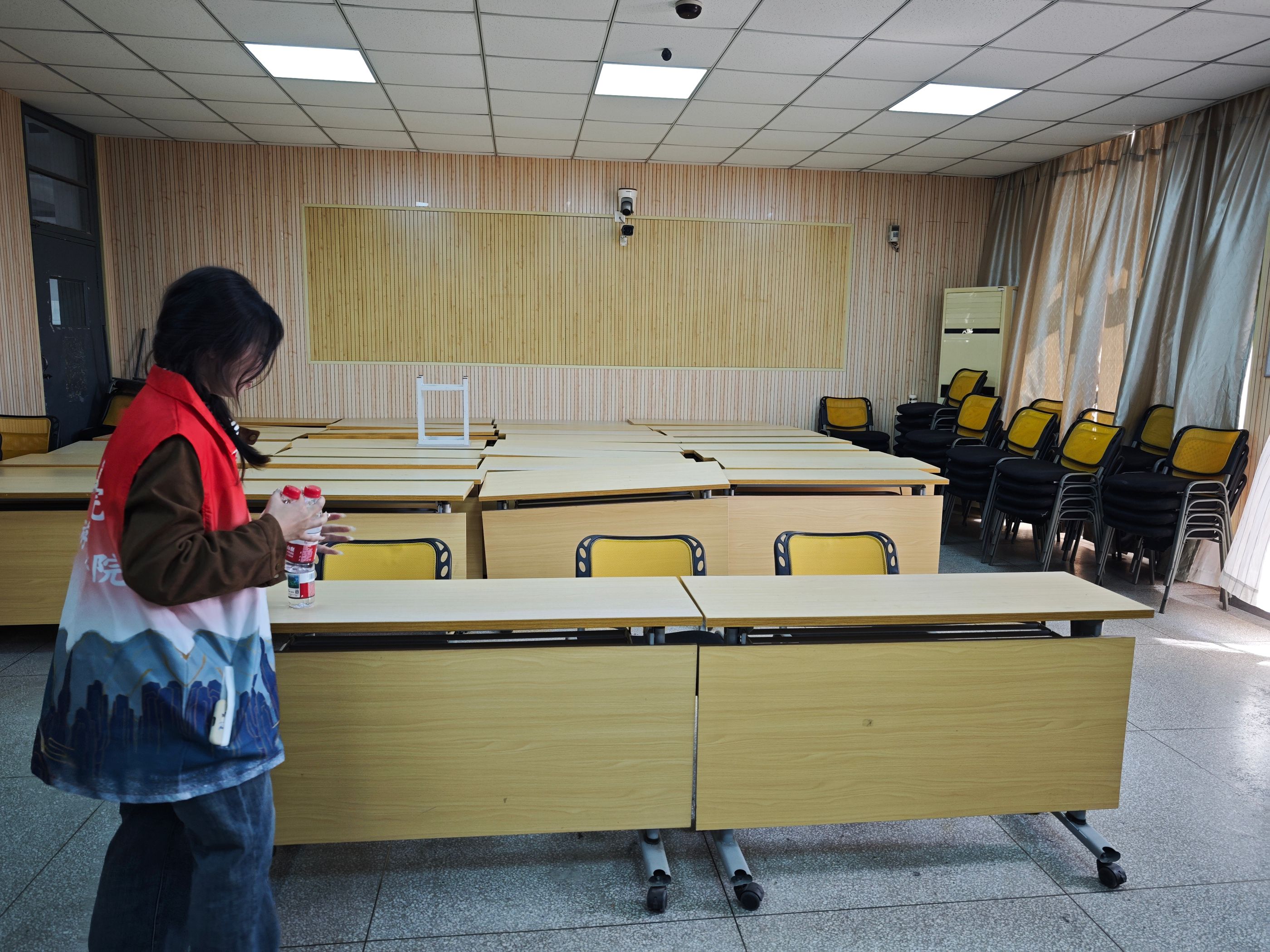 活動(dòng)中,支部黨員前往博學(xué)樓考場(chǎng)進(jìn)行考前布置工作。大家分工協(xié)作,對(duì)考場(chǎng)教室進(jìn)行全面清掃,整理并擺放桌椅,確保每個(gè)環(huán)節(jié)細(xì)致到位。經(jīng)過(guò)數(shù)小時(shí)的忙碌,考場(chǎng)環(huán)境整潔有序,為考生營(yíng)造了溫馨舒適的考試氛圍。