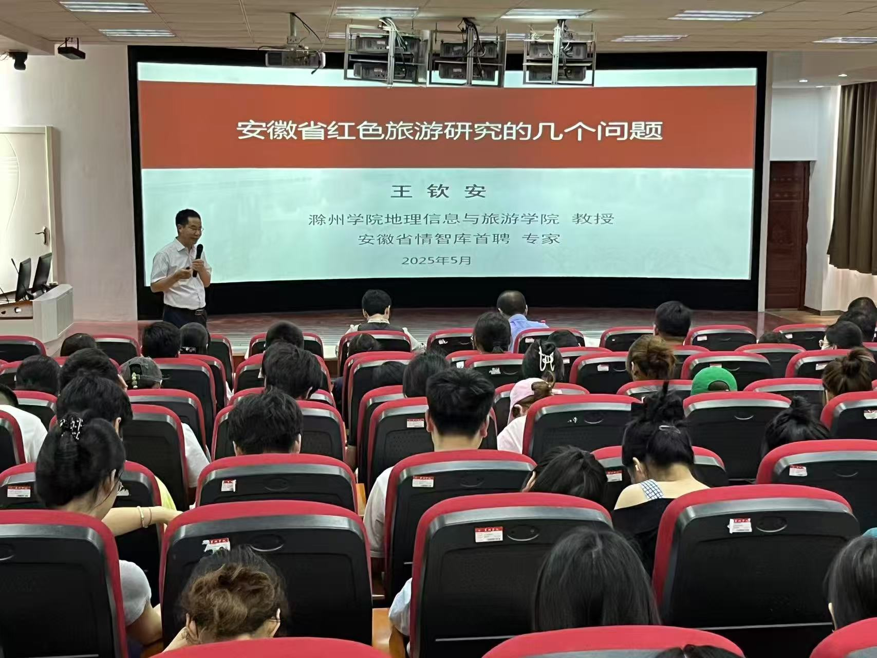 2025年5月28日下午,巢湖學院旅游管理學院特邀安徽省省情智庫首聘專家、滁州學院地理信息與旅游學院王欽安教授作《安徽省紅色旅游研究的幾個問題》專題講座和學科專業建設指導。會議由雷若欣教授主持,旅游管理學院部分師生代表參加了會議。