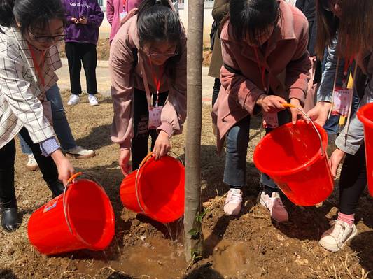 首先,各參與人員在進行簡要的方陣集合、任務布置、植樹流程及安全事項講解后,同學們便有序的開始了植樹活動。同學們分工明確,齊心協力,揮舞鐵鍬翻新土,擼起袖子忙栽樹,扶植新苗列成行,呈現出一派熱火朝天的勞動場面。不僅為春光明媚的三月增添了盎然的綠意,更是用黨員的行動完美詮釋了保護生態、和諧共存的美好理念。