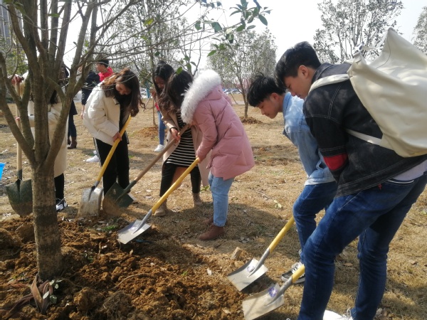綠化鴻程,美化人生.春意盎然,萬物復(fù)蘇。隨著冬意的散去,一年一度的植樹節(jié)也隨之而臨。3月11日下午,工商管理學(xué)院開展2019屆畢業(yè)學(xué)子紀念林活動。院黨委書記柳洪瓊、院長羅發(fā)海、黨委副書記黃春芳、副院長陶有田、團總支書記金晶,以及2019屆優(yōu)秀畢業(yè)生代表、青年志愿者協(xié)會成員出席了活動。