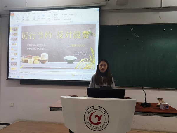 19應統1班和19數應2班通過團課學習、視頻觀賞形式從浪費糧食的現象、糧食安全危機意識、堅決制止浪費行為、節約糧食從我做起這四個方面讓同學們了解到了厲行節約的正確意義。