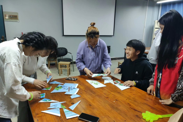 4月22日中午,志愿者們?cè)谝皇程谜古_(tái)處宣傳世界地球日“集字挑戰(zhàn)賽”活動(dòng),有意報(bào)名組隊(duì)參賽的同學(xué)只需現(xiàn)場(chǎng)手持環(huán)保宣傳標(biāo)語拍照打卡,在網(wǎng)絡(luò)平臺(tái)發(fā)布動(dòng)態(tài),同時(shí)@青年志愿者聯(lián)合會(huì)參與線上話題互動(dòng)即為報(bào)名成功。同學(xué)們踴躍報(bào)名,20支參賽隊(duì)伍很快組建完成。4月23日周五晚,世界地球日“集字挑戰(zhàn)賽”活動(dòng)正式開始。活動(dòng)共分10個(gè)環(huán)保主題打卡任務(wù)點(diǎn),共設(shè)有“垃圾分類投擲”“環(huán)保知識(shí)競(jìng)答”“快速拼圖”等20個(gè)隨機(jī)挑戰(zhàn)任務(wù),任務(wù)站點(diǎn)分布在校園操場(chǎng)、教室等各個(gè)角落,參賽隊(duì)伍在指定區(qū)域限時(shí)完成挑戰(zhàn)任務(wù),即可獲得“世”“界”“地”“球”“日”隨機(jī)一張主題貼紙,集齊五張貼紙即為闖關(guān)成功。為最快時(shí)間完成任務(wù),團(tuán)隊(duì)在完成任務(wù)后需抓緊時(shí)間趕往下一個(gè)任務(wù)點(diǎn),各參賽團(tuán)隊(duì)你追我趕,妙趣橫生。