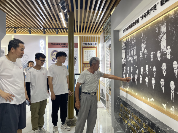 拜謁先烈功勛,英武浩氣駐心間。6月27日,宣講團成員們來到油坊鄭村參觀李慰農先烈的故居,瞻仰革命先烈的風采。李慰農故居隱藏于鄉村的重重房屋中,故居前是李慰農烈士的漢白玉雕像,李慰農雕像身軀偉岸,他肩負著為中國革命而戰的艱巨任務,他目光堅定的凝視遠方,像是在注視著革命斗爭的方向,并為革命事業一往無前。