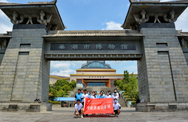 游博物之地,匯燦爛之魂。6月22日,宣講團成員們走出校門,來到博物館參觀遠古時期的巢湖、巢湖的農耕文化、巢湖的非物質文化遺產、巢湖名人館等專題展館。這里羅列了巢湖地區歷史上出現過的知名人物,這里面既有古代的王侯將相、文人騷客,也有近現代的革命烈士、有卓越成就的科技工作者。展現出巢湖地區的歷史悠久、人杰地靈。