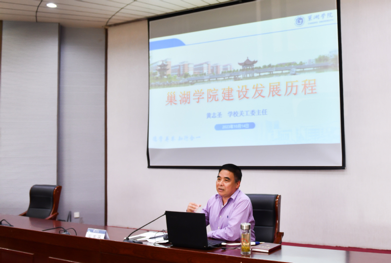 為進(jìn)一步幫助新入職教師熟悉校史、感悟校史底蘊(yùn),增強(qiáng)新入職教師對(duì)學(xué)校的歸屬感、認(rèn)同感和自豪感,10月14日,正值巢湖學(xué)院喜迎46周年華誕之際,校關(guān)工委主任黃志圣以《巢湖學(xué)院建設(shè)發(fā)展歷程》為題在致知樓報(bào)告廳為新入職教師作校史校情專題報(bào)告會(huì)。會(huì)議由黨委教師工作部部長(zhǎng)謝如龍主持,100余位新入職教師參加報(bào)告會(huì)。