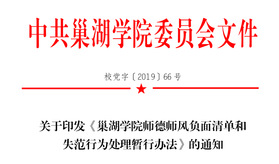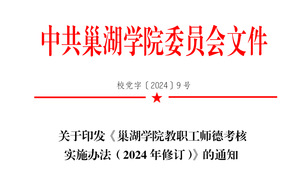 加強高位引領,構建師德建設長效機制。強化組織領導。學校成立由黨委書記、校長任主任的黨委教師工作委員會,統籌規劃師德建設各項工作。學校黨委會每學期專題研究教師思想政治和師德師風建設工作,把握教職工思想動態,解決教職工關心關切的重大問題。健全制度體系。印發《中共巢湖學院委員會貫徹落實〈普通高等學校教師黨建和思想政治工作質量標準(試行)〉實施方案》,提升學校教師黨建和思想政治工作質量。制定《巢湖學院師德建設實施辦法(試行)》《巢湖學院教職工師德考核實施辦法(修訂)》《巢湖學院師德師風負面清單和失范行為處理暫行辦法》等文件,明確師德要求,劃清師德底線。嚴格師德監督。健全校院兩級監督機制,完善校院兩級教學督導、學生評教、輿情快速反應等制度,加強對教師意識形態及師德師風問題的監督,及時排查隱患。落實師德考核機制。完善考核指標體系,將師德表現作為教師聘任、職稱晉升、評獎評優的首要條件及年度考核的重要內容。推行師德考核負面清單制度,對師德失范行為實行“一票否決”。近年來,學校未發生師德師風失范行為。