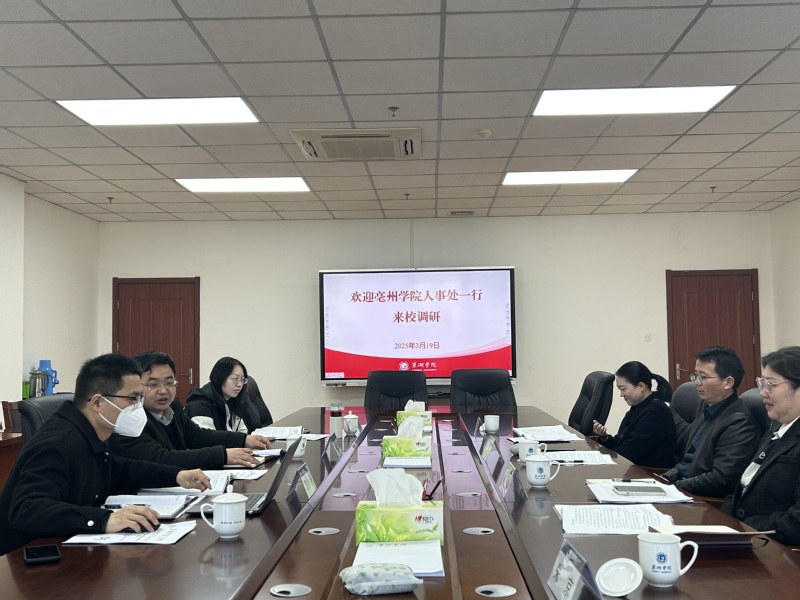 3月19日上午,亳州學(xué)院人事處處長(zhǎng)熊文強(qiáng)一行來(lái)校調(diào)研交流。人事處負(fù)責(zé)人彭正生、副處長(zhǎng)孫瑋、王靜及相關(guān)科室人員參加座談交流。