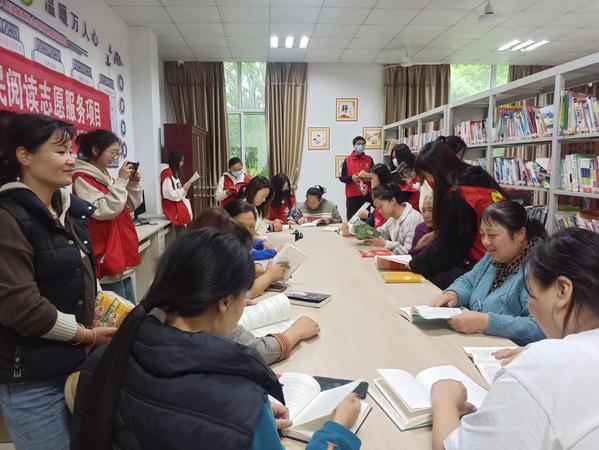 儀式過后,生環學院志愿者們參加了“閱讀共享美好,巾幗共沐書香”志愿服務,志愿者帶領大家進行讀書學習,互相分享經典好書,一起探討交流在書中讀到的心得體會,真正讓閱讀融入到村民的生活中。