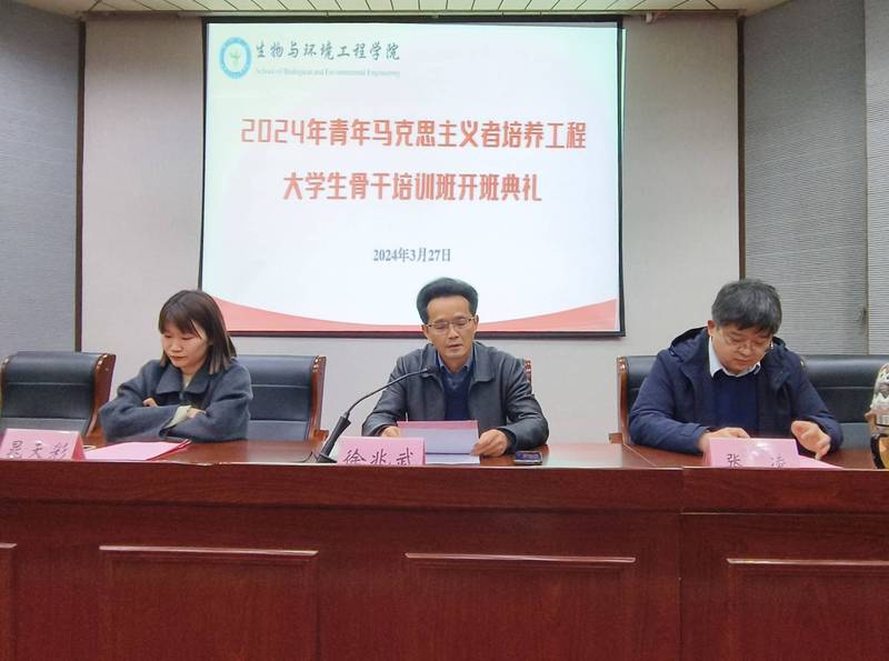 為深入學習貫徹習近平新時代中國特色社會主義思想和黨的二十大精神,深入實施青年馬克思主義者培養工程,3月27日下午,生環學院在致知樓報告廳舉辦2024年度“青馬工程”學生骨干培訓班開班典禮。生環學院黨委書記徐兆武、副書記張凌,學院團委書記晁天彩、副書記任夢溪和本期青馬工程培訓班全體學員參會,開班典禮由晁天彩主持。