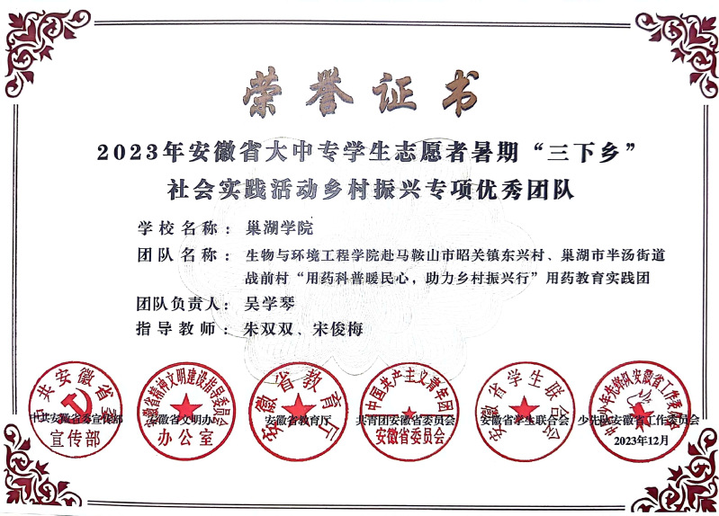 生物與環(huán)境工程學(xué)院堅(jiān)持以習(xí)近平新時(shí)代中國特色社會主義思想為指導(dǎo),秉持“發(fā)揮專業(yè)優(yōu)勢、推進(jìn)實(shí)踐育人、服務(wù)鄉(xiāng)村振興”工作理念,形成“12345”實(shí)踐工作體系和工作格局,即:依托“環(huán)巢湖鄉(xiāng)村振興協(xié)同技術(shù)服務(wù)中心”1個(gè)平臺,實(shí)施“圍繞鄉(xiāng)村振興戰(zhàn)略精心打造實(shí)踐基地”和“發(fā)揮學(xué)科區(qū)域優(yōu)勢服務(wù)經(jīng)濟(jì)社會發(fā)展”2項(xiàng)特色舉措,用好“三下鄉(xiāng)”“一院一鎮(zhèn)一品”“大學(xué)生社區(qū)實(shí)踐計(jì)劃”3類實(shí)踐載體,形成“‘春芽’課堂、暖心工程、低碳行動(dòng)、點(diǎn)‘亮’巢湖”4項(xiàng)品牌志愿服務(wù),通過鄉(xiāng)村“人才、產(chǎn)業(yè)、文化、生態(tài)、組織”5個(gè)維度,助力實(shí)現(xiàn)全面鄉(xiāng)村振興,全面提升學(xué)院實(shí)踐育人和服務(wù)地方經(jīng)濟(jì)社會發(fā)展能力水平。