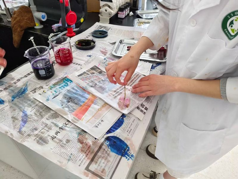 尋找樹葉脈絡,留住斑斕色彩。葉脈書簽制作比賽于潤德樓302實驗室開展。同學們浸煮葉片、去除葉肉、漂白、染色、風干、塑封,葉脈書簽制作現場氣氛熱烈,經過一道道工序之后,一片片富有創意的精美葉脈書簽就制作完成了。比賽結束后,專業評委們根據同學們的完成情況、元素選擇、色彩配比等標準對作品進行了評選,最終鮑雪萍同學憑借完整的葉脈結構和多重色彩搭配榮獲一等獎。