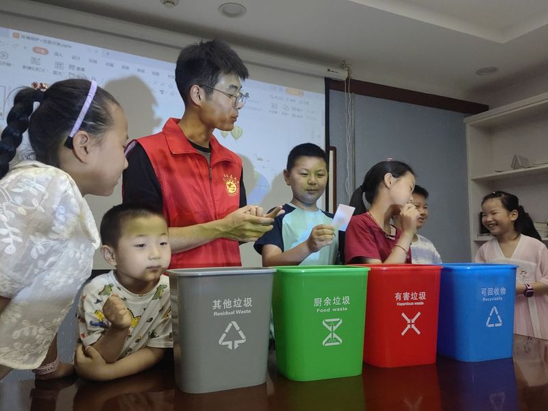 7月15日,生態團赴廬江縣崗灣街道蘇家河社區居委會為“青筑夢,微愛課堂”暑期班的小朋友們普及垃圾分類知識。隊員們通過科普小游戲,介紹了生活垃圾分類標準、垃圾分類法律法規等知識,引導小朋友們從身邊點滴做起,養成低碳環保的生活方式,為生態環境保護貢獻自己的力量。