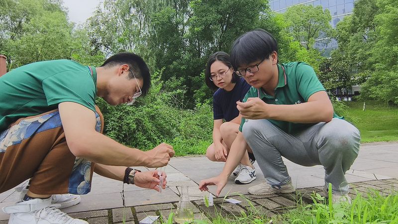 7月14日,生態團來到黃陂湖流域開展水質與土壤檢測。隊員們在老師的指導下對入湖支流及附近農田的水、土進行隨機取樣,現場測定了水體pH值、氨氮、亞硝態氮等數據,在實驗室內測定了土壤pH值、有機質含量、重金屬含量等數據。通過實驗了解當地水土基本理化特征,為實踐團進一步開展水土保護工作提供了數據支撐。