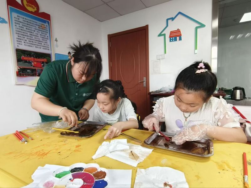 7月16日,生態團前往廬江縣崗灣街道蘇家河社區開展“愛心葉脈,尋味環保”——葉脈書簽制作支教活動。通過樹葉書簽的制作,讓小學生們親身參與自然資源再利用的過程,加深了他們對大自然的了解和尊重,增強了自然環境的保護意識。