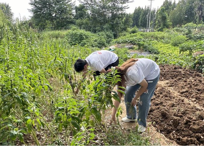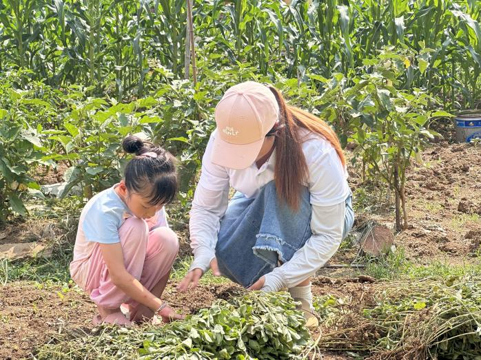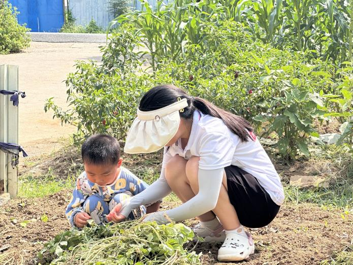 8月30日,實(shí)踐團(tuán)成員攜手社區(qū)工作人員,帶領(lǐng)小朋友深入戰(zhàn)前村農(nóng)業(yè)示范基地,在農(nóng)戶們和志愿者們的引導(dǎo)下,小朋友們參與農(nóng)作物種植、灌溉、除雜草等農(nóng)事活動(dòng),親身體驗(yàn)農(nóng)耕的艱辛與樂趣。活動(dòng)過程中,小朋友們不怕泥土沾滿衣裳,不怕汗水濕透衣襟,用稚嫩的小手觸摸著每一寸土地,大家沉浸在農(nóng)耕的辛勞和快樂中,用辛勤和汗水詮釋農(nóng)耕意義,讓農(nóng)耕文化“活”了起來。