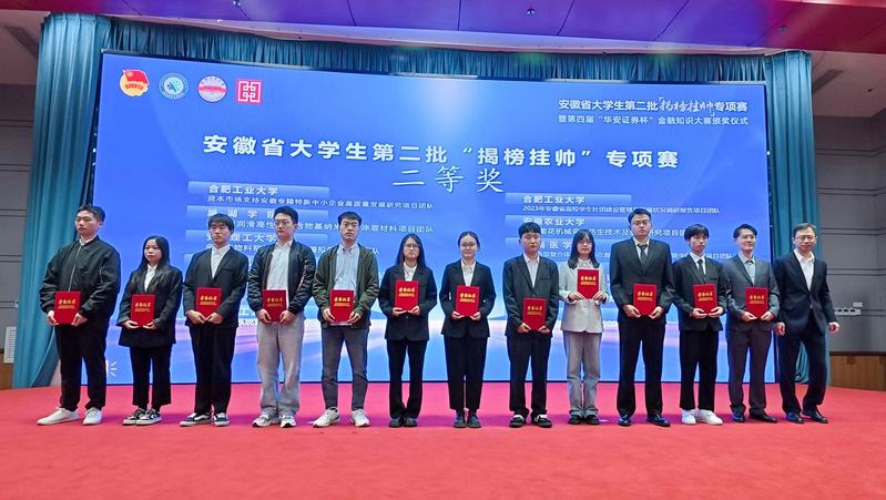 10月22日,由團省委、省教育廳、省科協、省社科院、省學聯共同主辦,合肥工業大學和華安證劵股份有限公司承辦的安徽省大學生第二批“揭榜掛帥”專項賽決賽在合肥工業大學屯溪路校區舉行。此次比賽秉承“以國家和社會需求為導向、以競爭協同機制為手段、以解決實際問題為目標”的思路,在市場化解決企業需求的同時,架設政企校產學研深度融合的橋梁,促進科技成果轉化,更好服務安徽發展。