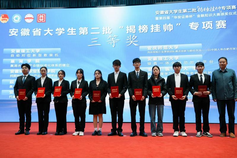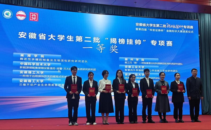 10月22日,由團省委、省教育廳、省科協、省社科院、省學聯共同主辦,合肥工業大學和華安證劵股份有限公司承辦的安徽省大學生第二批“揭榜掛帥”專項賽決賽在合肥工業大學屯溪路校區舉行。此次比賽秉承“以國家和社會需求為導向、以競爭協同機制為手段、以解決實際問題為目標”的思路,在市場化解決企業需求的同時,架設政企校產學研深度融合的橋梁,促進科技成果轉化,更好服務安徽發展。