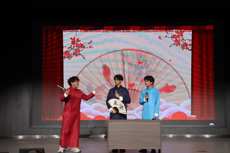 小品《非誠勿擾》表演中,同學們“戲精附體”,討論愛情的真諦,表演的淋漓盡致,歡笑聲灑滿校園。