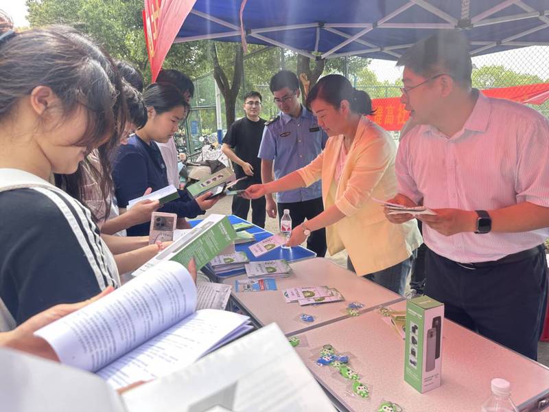 活動當天,生物多樣性主題展板與宣傳標語吸引了眾多師生駐足。學院志愿者與生態環境分局工作人員組成科普小隊,向同學們發放《生物多樣性保護手冊》《生態環境宣傳進學校》等資料,結合巢湖生態系統特點,講解濕地保護、瀕危物種修復等知識。“原來巢湖濕地有這么多珍稀鳥類,比如東方白鸛、白頭鶴!”一名學生在聽完講解后感慨道,“保護生物多樣性真的需要每個人的參與。”