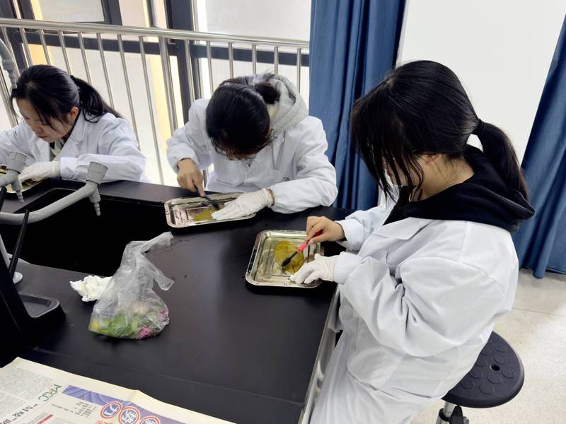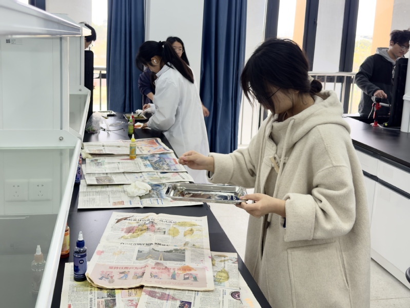 在潤德樓302實驗室舉行的葉脈書簽制作大賽中,參賽同學通過浸煮、去肉、漂白、染色、風干、塑封等工序,將普通葉片轉化為精美的藝術品。比賽現場氣氛熱烈,同學們專注地操作每一個步驟,最終完成50余件獨具匠心的作品。經專業評委從創意性、工藝水平、色彩搭配等維度綜合評定,董宇康同學制作的系列書簽以獨特的漸變色彩設計獲得一等獎;肖禮鵬同學的作品巧妙融入星座元素,榮獲最佳創意獎。