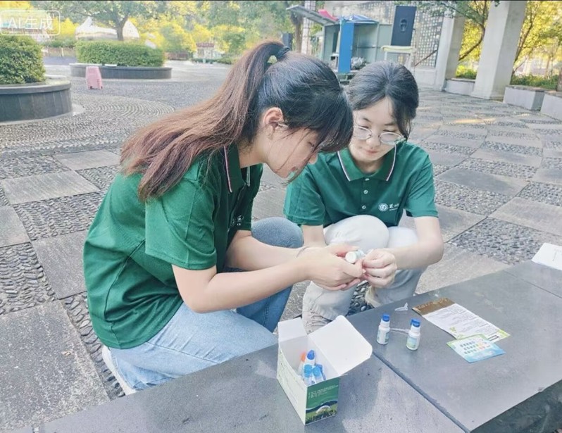 7月5日至6日,宣講團轉入科學調研階段,來到青龍灣社區展開水質和土壤檢測。在專業教師指導下,隊員們精心選取代表性點位,嚴格按照規范采樣。大家使用便攜式檢測設備,現場測定水體pH值、鋅離子濃度、氮含量等關鍵指標,并對土壤的氨氮、磷含量等進行了初步分析,為團隊深入了解當地水土環境特征、提出針對性保護建議奠定了科學基礎。