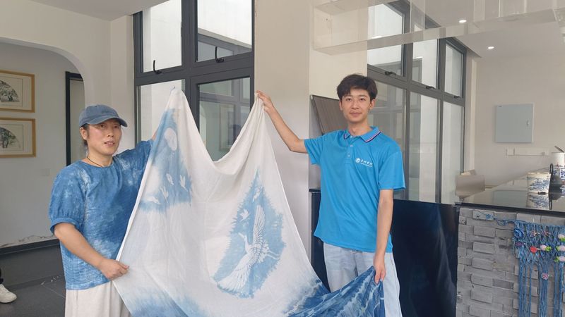 在“圩壹·森境”體驗(yàn)基地,實(shí)踐團(tuán)隊(duì)與非遺傳承人共同創(chuàng)作具有現(xiàn)代審美的藍(lán)染作品并學(xué)習(xí)剪紙技藝。通過(guò)親身體驗(yàn)傳統(tǒng)技藝,實(shí)踐團(tuán)成員認(rèn)識(shí)到傳統(tǒng)工藝需要當(dāng)代表達(dá),藍(lán)染不僅是技藝,更是一種生活美學(xué)的傳承,通過(guò)設(shè)計(jì)賦能,這些古老技藝可以在都市市場(chǎng)找到新空間。