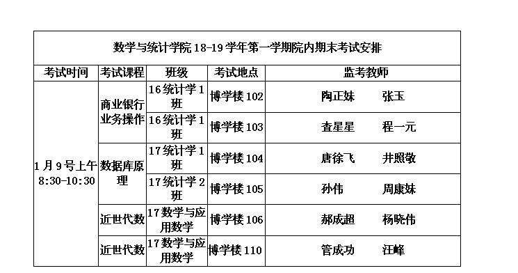 數學與統計學院18-19學年第一學期院內期末考試安排