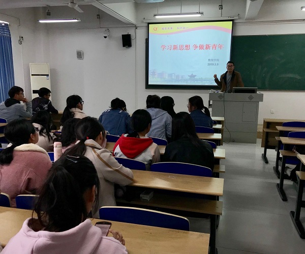 為進一步提升“學習新思想,爭做新青年”網上團課的學習率,2019年3月15日下午,數學與統計學院于慎思樓中601開展“學習新思想,爭做新青年”的網上團課動員會。本次會議由院團總支書記管成功主持,17級全體團員參加。