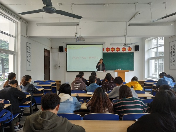 為貫徹落實“兩會”精神,幫助團學干部們學習理解“兩會”精神,進一步達成共識,提高認識。4月3日下午2點數學與統計學院團總支于明德樓102召開4月份政治理論學習,學習主題為“兩會”精神。本次會議由團總支書記管成功主持,由團總支副書記費文靜主講,17級、18級學生干部、學生代表及積極分子參加。