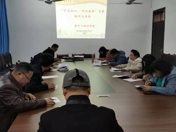 根據習近平總書記關于“不忘初心、牢記使命”主題教育重要講話精神以及學校黨委的要求,12月11日下午,數學與統計學院教工黨支部召開“不忘初心、牢記使命”主題教育專題組織生活會和開展民主評議黨員。本次會議由院黨總支書記孫遠春主持,各教工支部全體黨員參加。