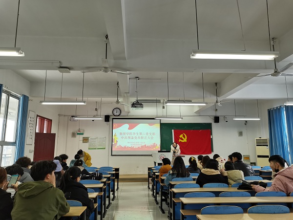 為夯實黨支部戰斗堡壘基礎,嚴格落實黨的三會一課制度,數學與統計學院學生第二黨支部于12月14日中午12:20在慎思樓北203教室召開中共預備黨員轉正大會,大會主要討論鐘振翔等6位同志的轉正問題。本次會議由學生第二黨支部書記周冬梅主持,支部全體在校黨員參加,2020年下半年新發展的入黨積極分子參與支部大會。