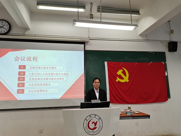 會(huì)議秉著“公正、公平、公開”的原則,嚴(yán)格按照黨員發(fā)展各項(xiàng)程序執(zhí)行,逐一討論吳凡、許晨曦、馮文浩、唐范琳、楊濤、高潔六位同志的入黨問題。根據(jù)會(huì)議議程要求,首先由發(fā)展對(duì)象匯報(bào)對(duì)黨的認(rèn)識(shí)、入黨動(dòng)機(jī)、本人履歷、家庭成員和主要社會(huì)關(guān)系情況、現(xiàn)實(shí)表現(xiàn)以及需要向黨組織說明的其他問題;隨后,由入黨介紹人發(fā)展對(duì)象有關(guān)情況;其次支委會(huì)報(bào)告對(duì)發(fā)展對(duì)象的審查情況;接著與會(huì)黨員對(duì)發(fā)展對(duì)象能否入黨進(jìn)行討論;最后,正式黨員開展無記名投票。六位同志獲得大會(huì)一致同意接受為中共預(yù)備黨員。