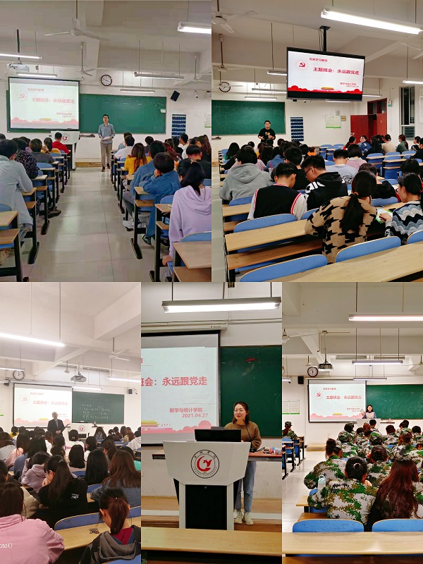 以史為鑒,可以知興替,為感悟黨史,積蓄?yuàn)^斗力量,數(shù)統(tǒng)學(xué)院各年級(jí)學(xué)生于4月27日召開(kāi)“永遠(yuǎn)跟黨走”黨史學(xué)習(xí)主題班會(huì)。本次班會(huì)由數(shù)統(tǒng)學(xué)院各年級(jí)輔導(dǎo)員組織開(kāi)展。
