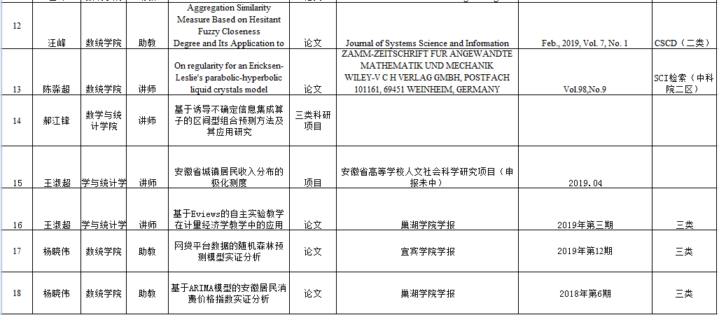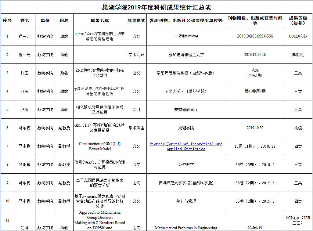 數學與統計學院2019年度科研項目及成果一覽表